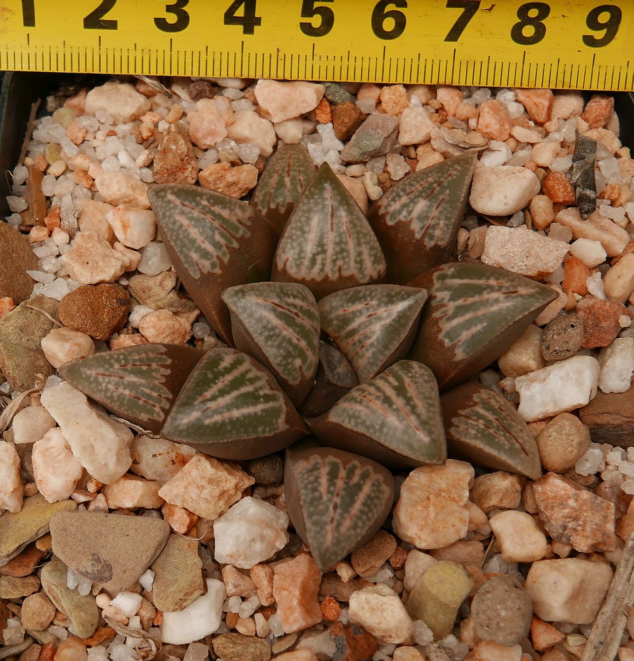 Name: Haworthia 'Drew White' series seedling Size (cm): 7 cm wide Origin: Horticultural Hybrid Created by: Gerhard Marx Cultivated by: Gerhard Marx