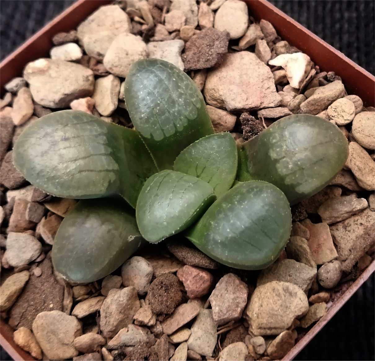 Name: Haworthia springbokvlakensis - Middelwater 'M080322A' Size (cm): 5.5 Origin: Vegetatively Cultivated by: HaworthiaGems Click on thumbnail to the right for more info or images.
