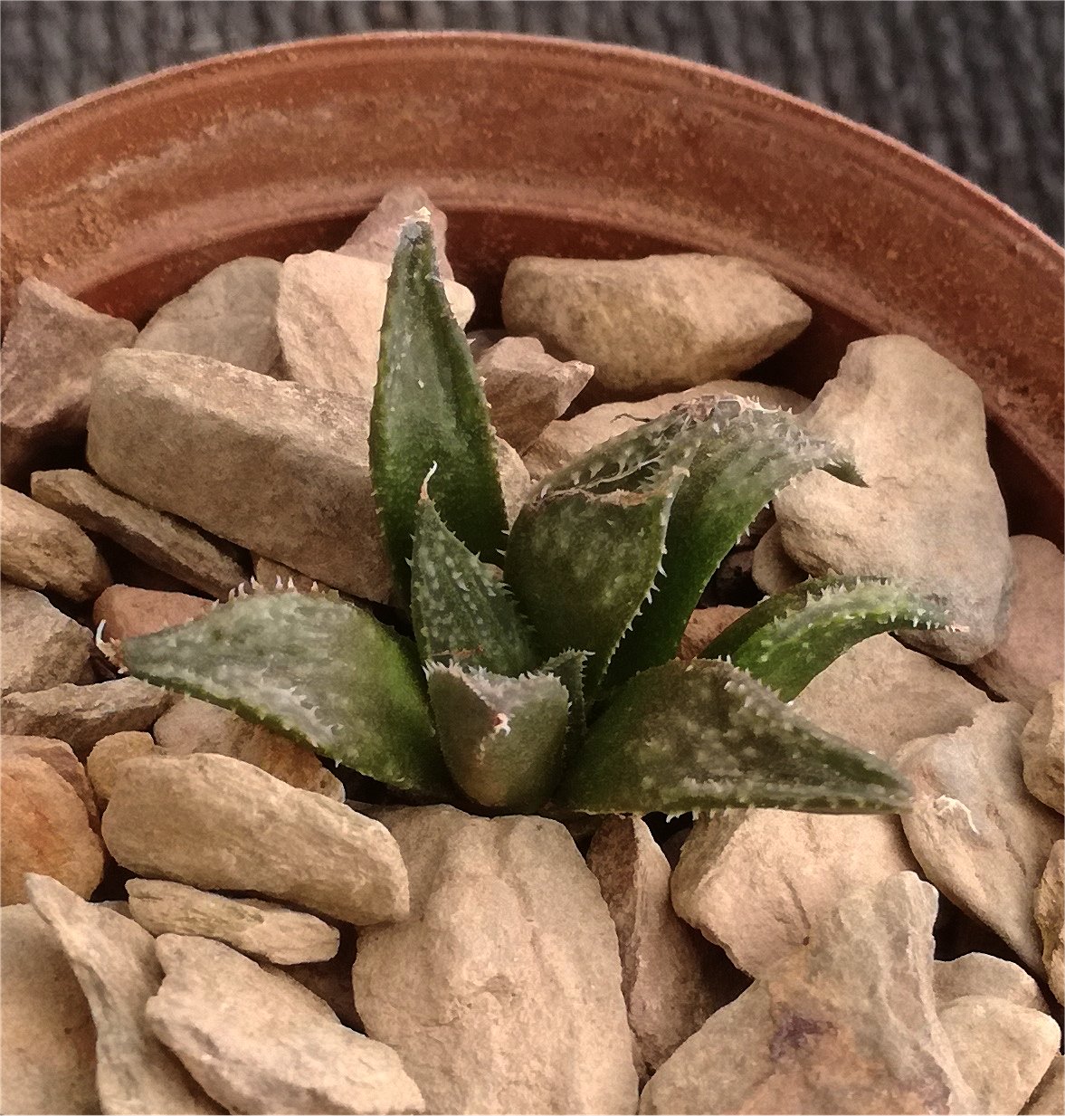 Name: Haworthia ' M04071808' - Bev's Wonder Series' Size (cm): 3.2 Origin: Horticultural Hybrid Created by: Gerhard Marx Cultivated by: Gerhard Marx Click on thumbnail to the right for more info or images.