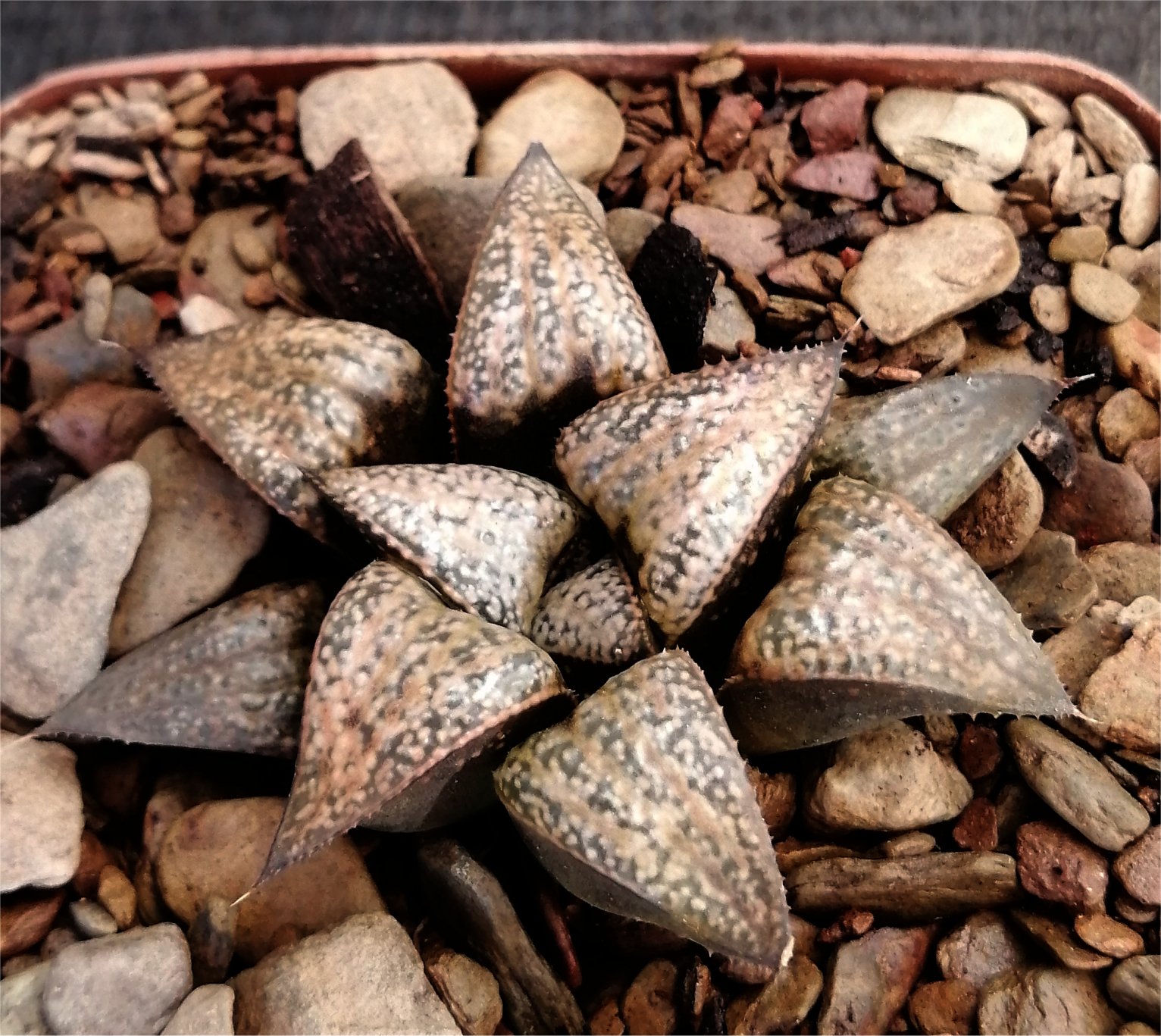 Name: Haworthia splendens var masai - GM 447 Snijmanskraal 'Platinum White 034'(GMS) Size (cm): 5.5 Origin: Vegetative propagation Cultivated by: HaworthiaGems Click on thumbnail to the right for more info or images.
